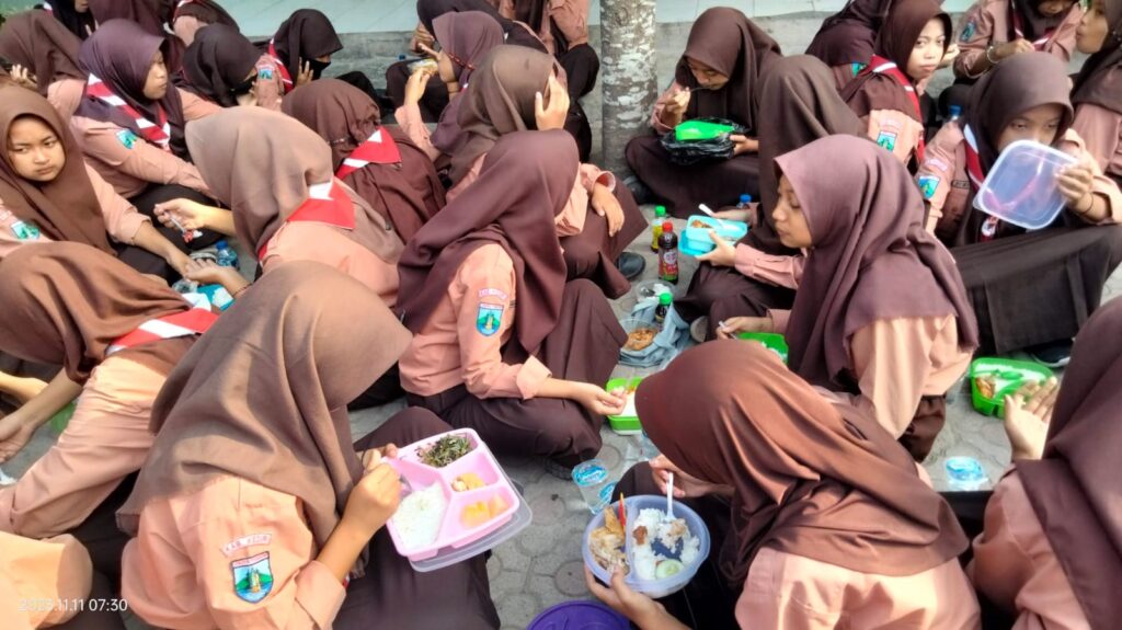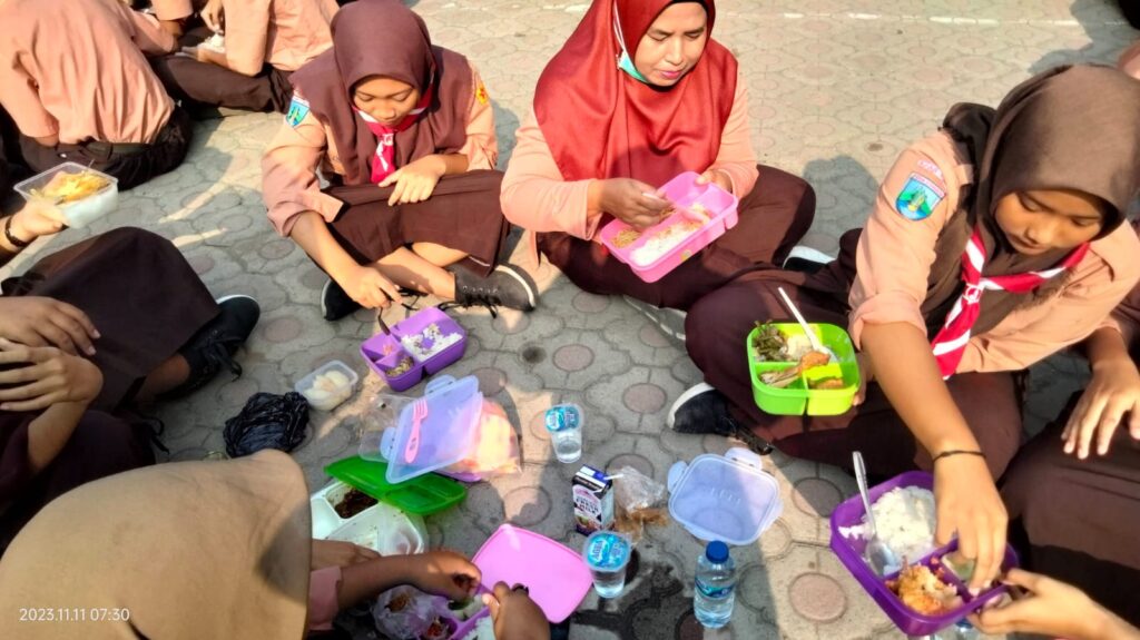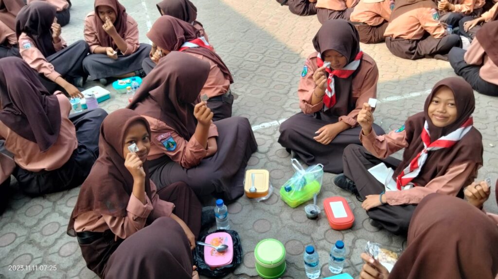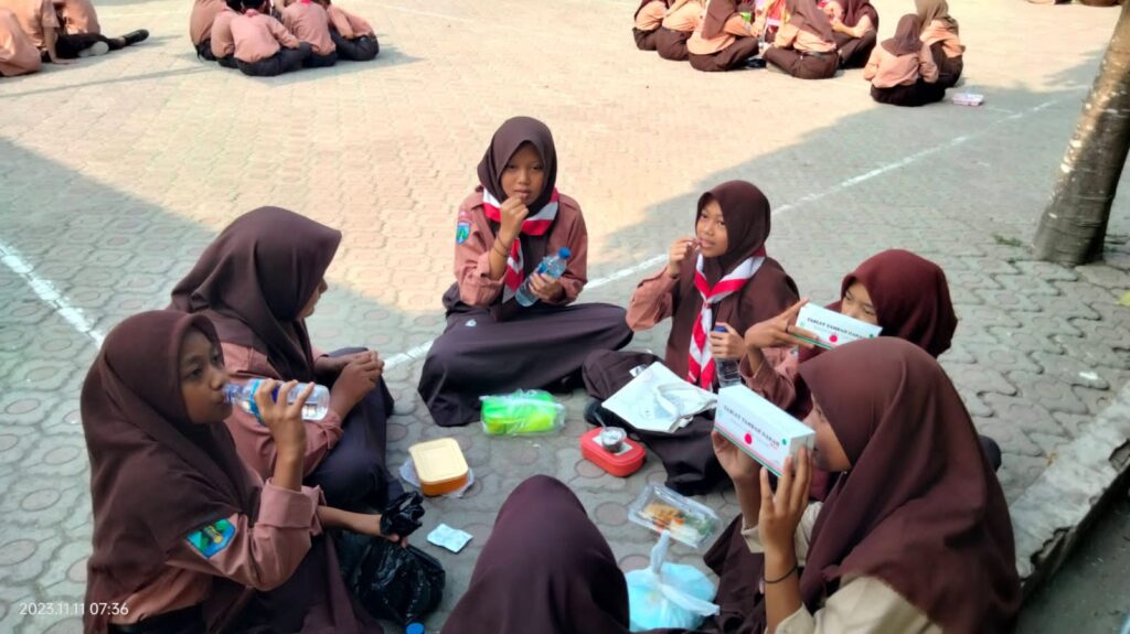 Sabtu (11/11/2023) UPTD SMPN 2 Puncu mengadakan kegiatan Aksi Bergizi yang diawali dengan Gerakan Sarapan Bersama. Peserta didik dari kelas 7, kelas 8, dan kelas 9 terlihat antusias mengikuti kegiatan ini. Mereka membawa bekal makanan dan minuman dari rumah dan selanjutnya secara serentak dimakan bersama-sama selama 30 menit sebelum pembelajaran dimulai di halaman sekolah. Selain itu, kegiatan Aksi Bergizi dilanjutkan dengan minum tablet tambah darah bersama khusus untuk siswa putri.