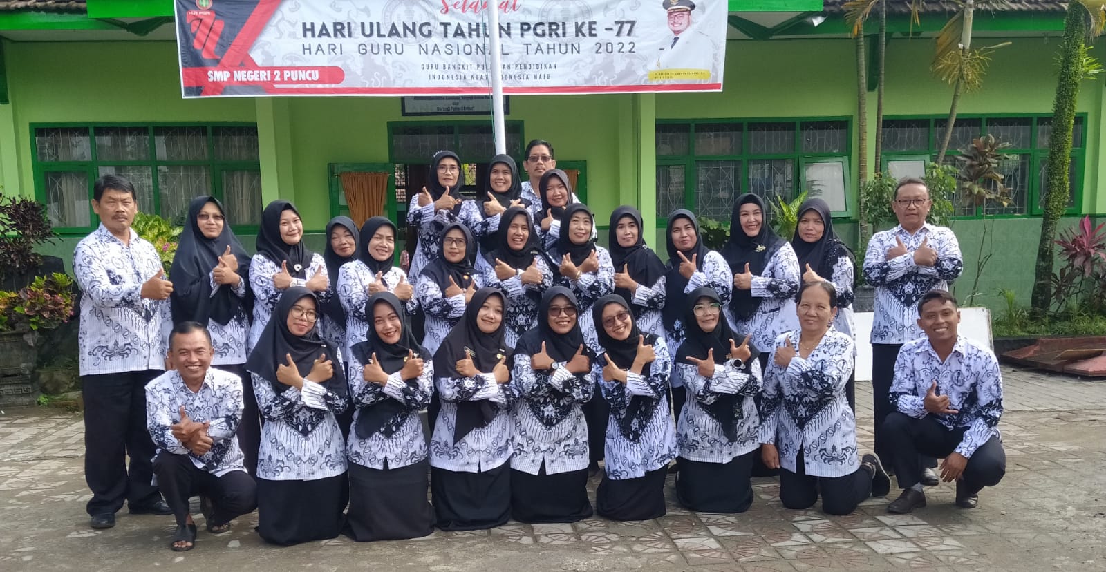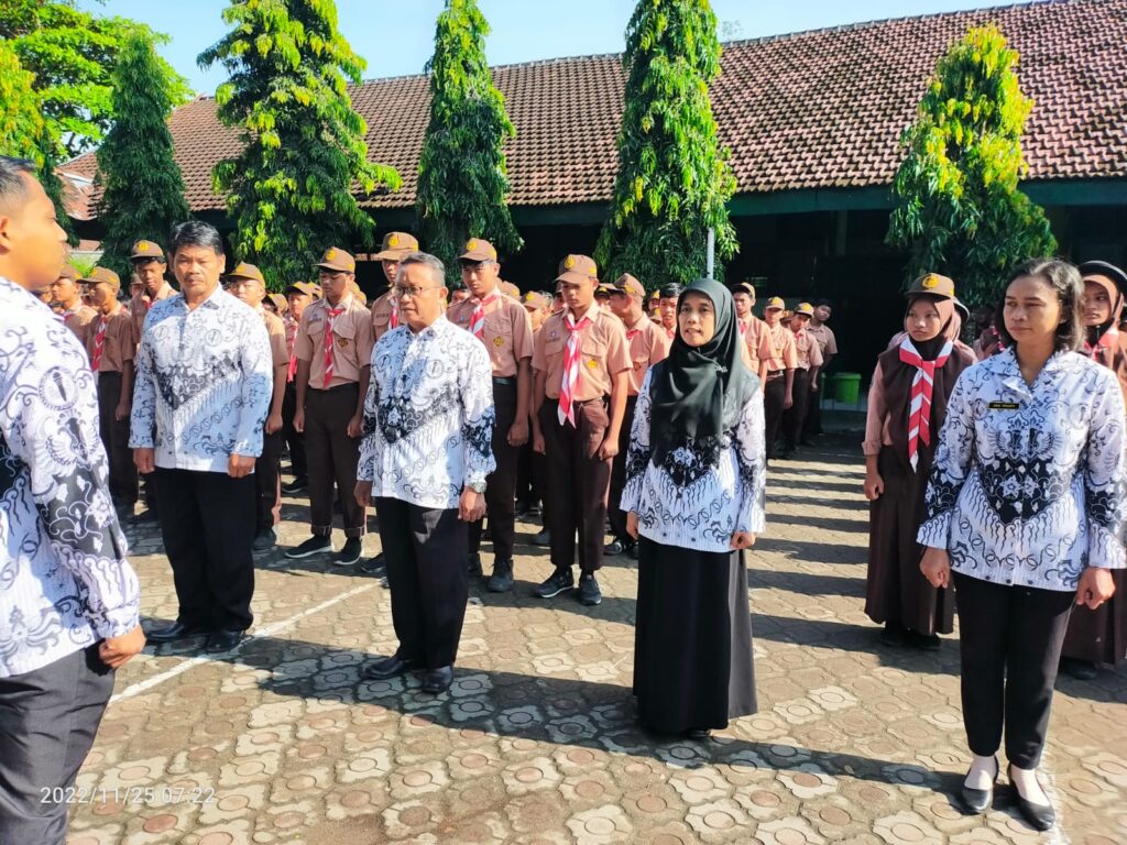 Warga SMPN 2 Puncu melaksanakan upacara bendera pada hari Jumat, 25 November 2022 dalam rangka memperingati Hari Guru Nasional dan HUT PGRI ke-77. Upacara kali ini sangat istimewa karena seluruh petugasnya adalah bapak dan ibu guru SMPN 2 Puncu.